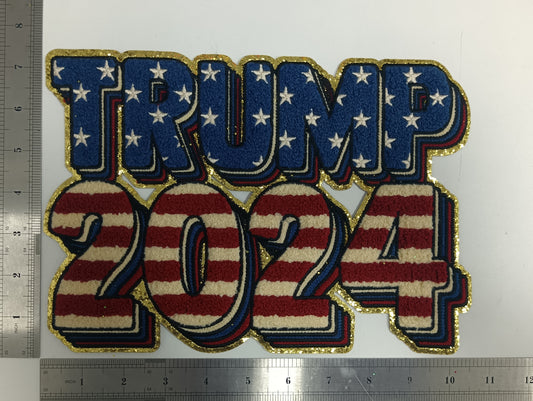 Trump 2024 American Flag on Gold Glitter Chenille Iron-on Patch