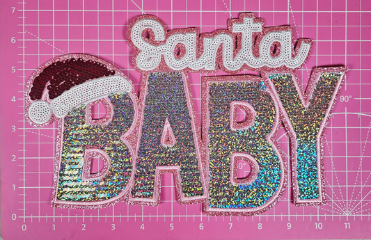 Santa Baby Large Sequin Pink Glitter Iron-on Patch