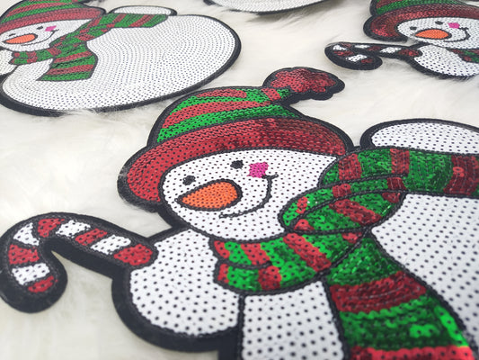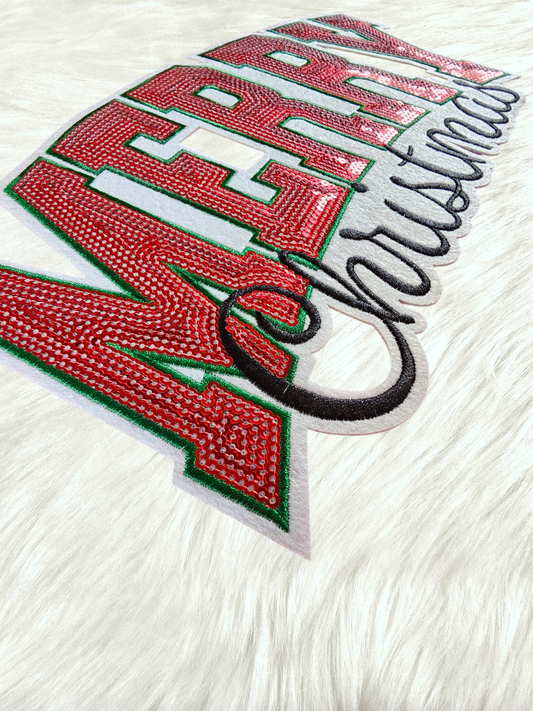 Merry Christmas Red Sequin on White Felt Iron-on Patch