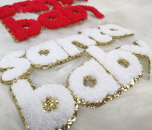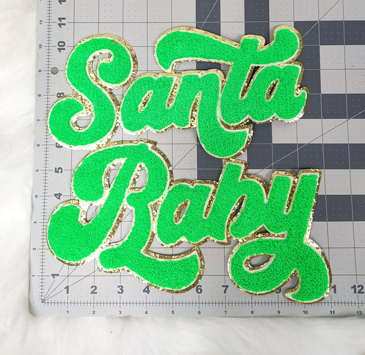 Retro Santa Baby Chenille Glitter Iron On Patch