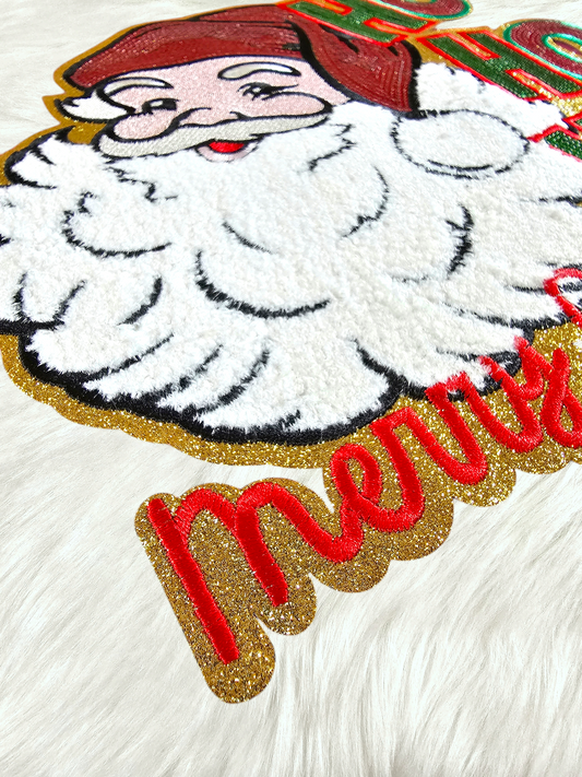 HO HO HO Santa Large Sequin and Chenille Gold Glitter Iron-on Patch
