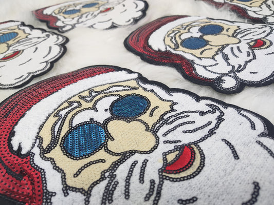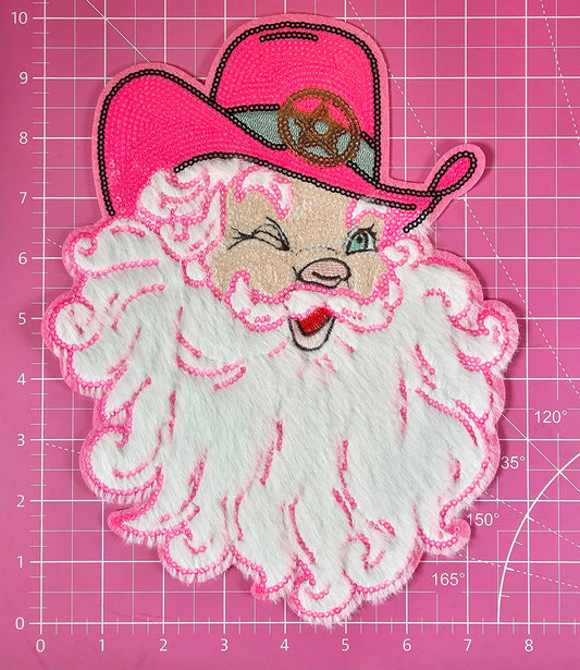 Fuzzy Beard Pink Retro Santa Large Sequin Iron-on Patch