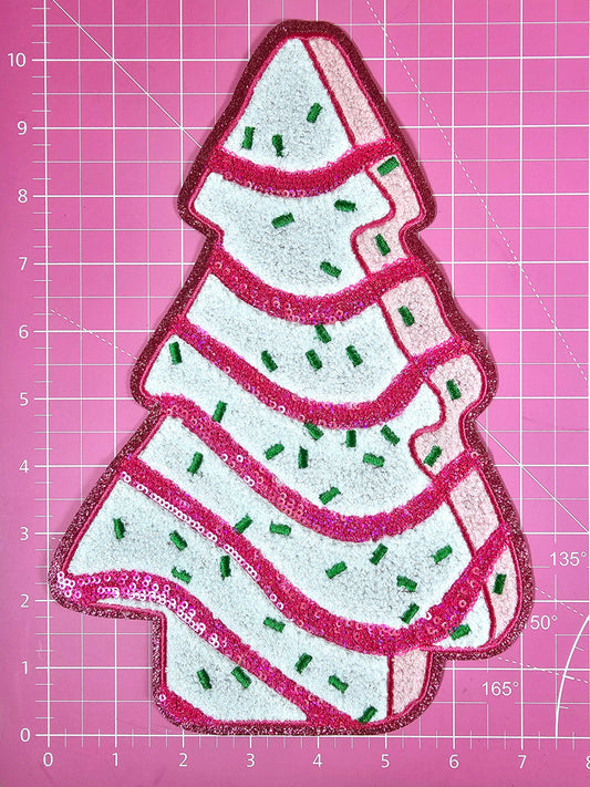 Christmas Tree Lil Deb Pink Sequin Chenille Iron-on Patch