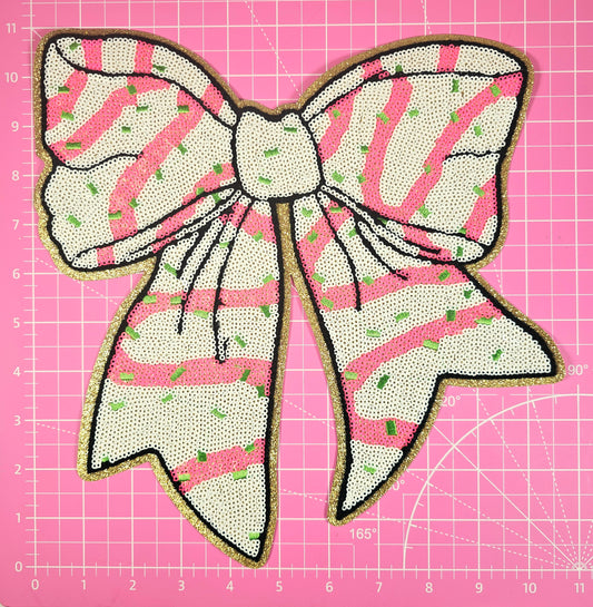 Little Deb Pink Christmas Bow Sequin Iron Patch with Gold Glitter