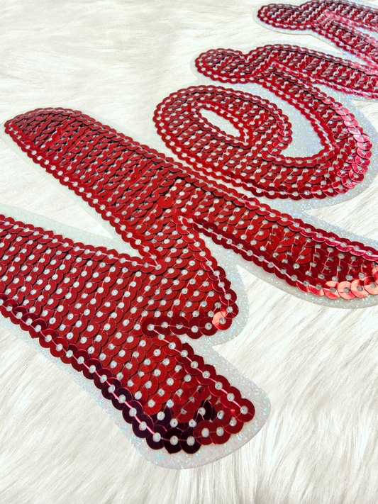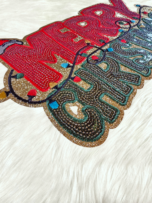 Merry Christmas Lights Red Sequin on Gold Glitter Iron-on Patch