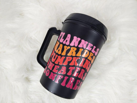 'Flannels, Hayrides, Pumpkins, Sweaters, Bonfires' HIP SIPS Mega Mug 34oz