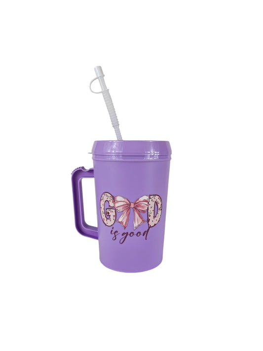 God Is Good Pink Bow Mega Trucker Mug 34oz