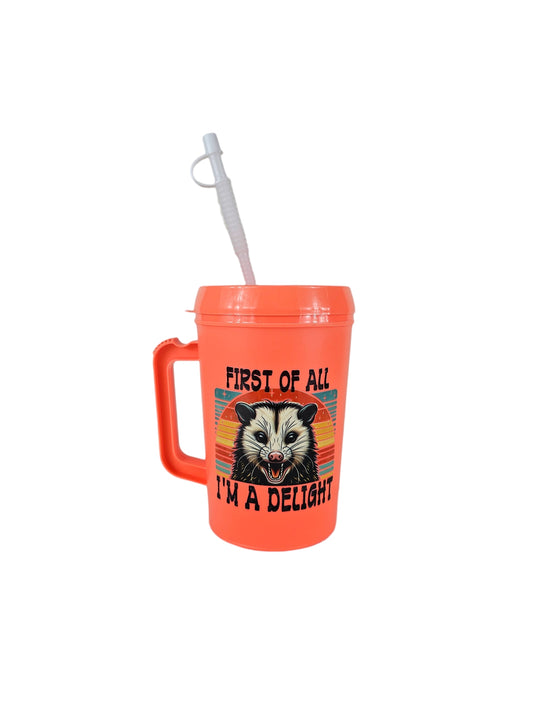 First Of All I'm A Delight Trash Opossum Mega Trucker Mug 34oz