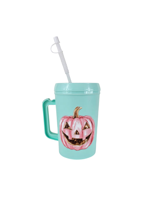 Pink Watercolor Halloween Pumpkin Mega Trucker Mug 34oz
