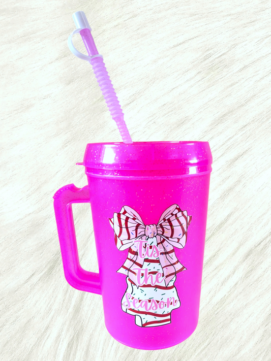 Tis The Season Christmas Cake Pink Bow Mega Trucker Mug 34oz