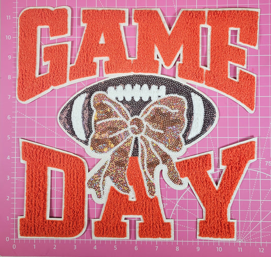 Game Day Orange Chenille Sequin Football Iron-on Patch