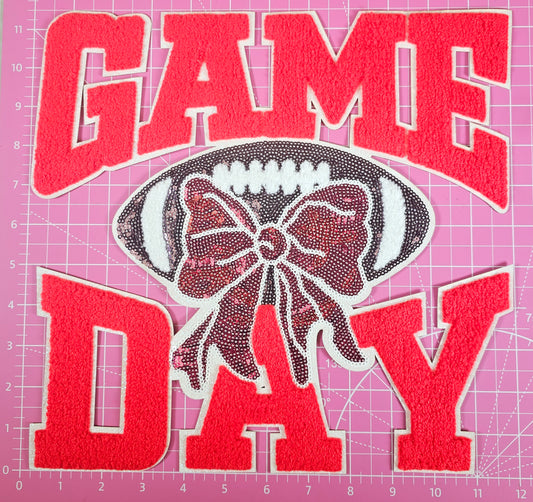 Game Day Red Chenille Sequin Football Iron-on Patch