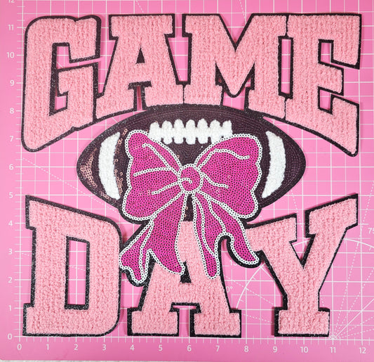 Game Day Pink Chenille Sequin Football Iron-on Patch
