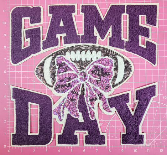 Game Day Purple Chenille Sequin Football Iron-on Patch