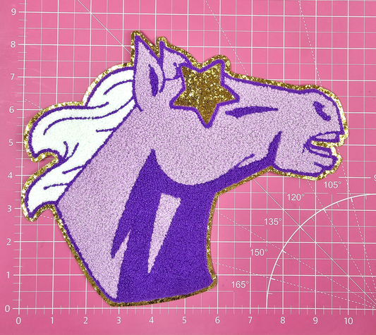 Purple Mustang Horse Bronc Mascot with Star Eyes Large Chenille Iron-on Patch