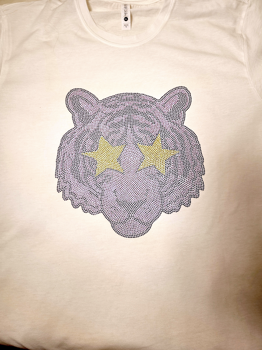 Purple Tiger Spangle Rhinestone Mascot Iron on HotFix