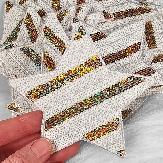 4" White and Holographic Gold Sequin Star Iron On Patch