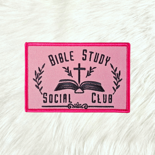 Bible Study Social Club Pink Embroidery Iron On Patch
