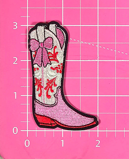 Cowgirl Boot with Bow Embroidery Iron On Patch