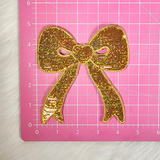 Side Bow Holographic Gold Sequin Iron On Patch