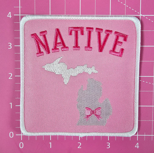 Michigan Native Pink Bow Embroidery Iron On Patch