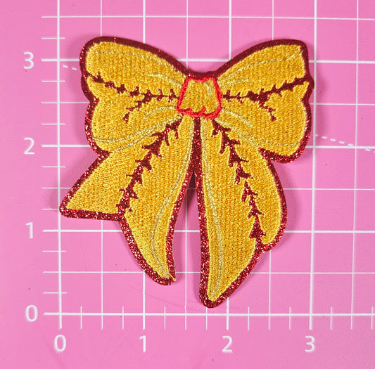 Softball Bow Gold Glitter Embroidery Iron On Patch