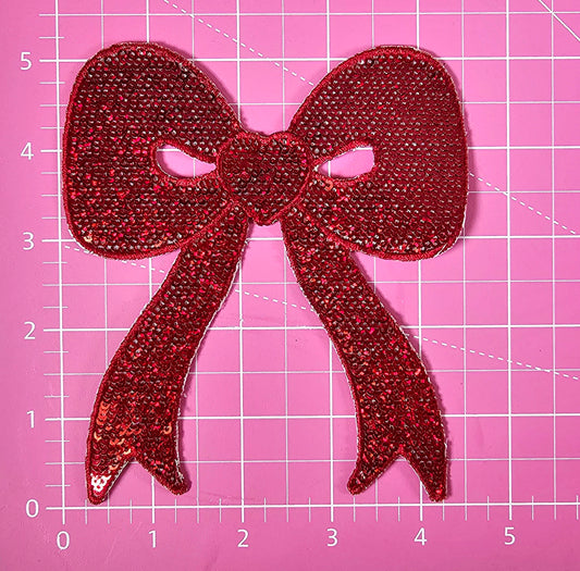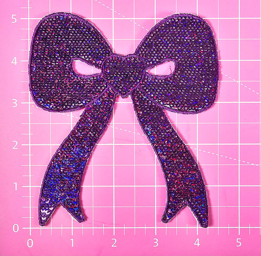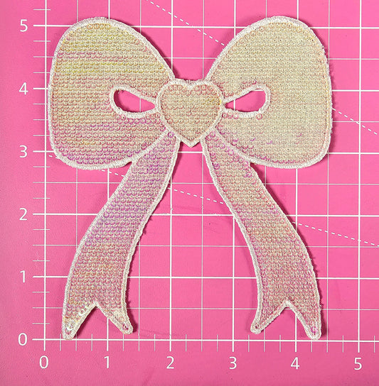 Side Bow White Pearl Light Pink Sequin Iron On Patch