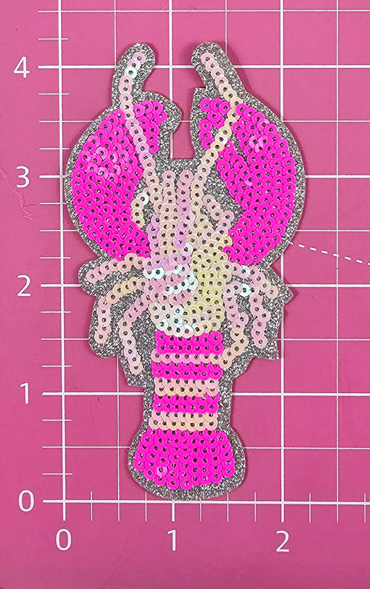 Small Hot Pink Sequin Crawfish Mardi Gras Iron On Patch