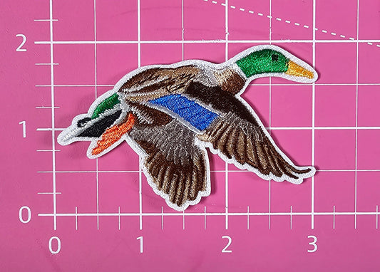 Flying Mallard Duck Brown Embroidery Iron On Patch