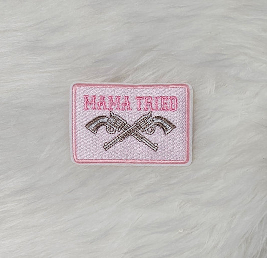 Pink Mama Tried Gun Embroidery Iron On Patch