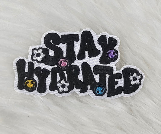 'Stay Hydrated' Retro Floral Smile Embroidery Iron On Patch
