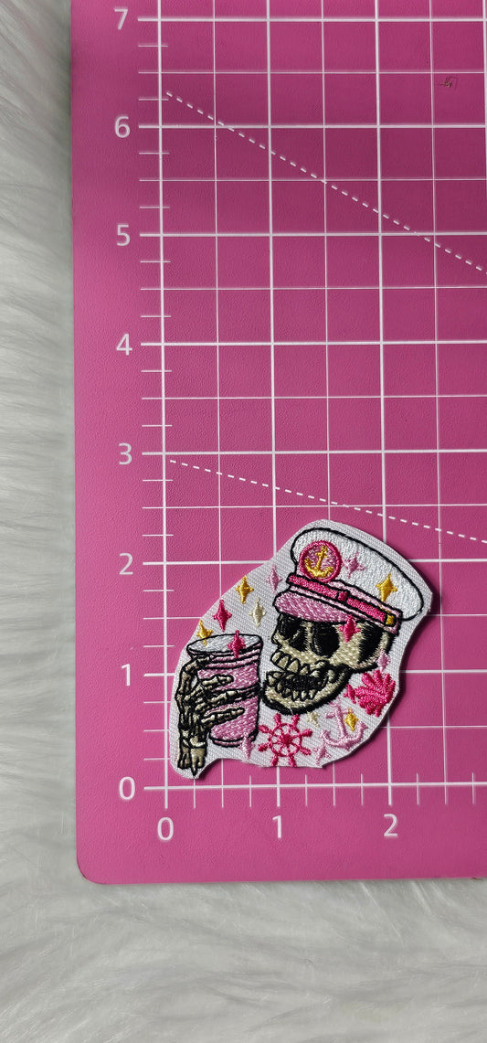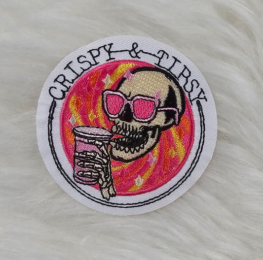 'Crispy & Tipsy' Drinking Skeleton Embroidery Iron On Patch