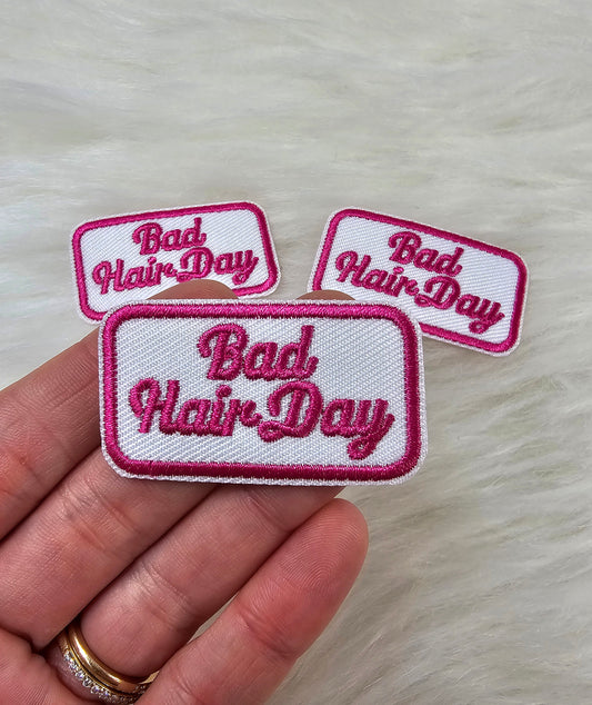 Sold out'Bad Hair Day' Pink Iron On Patch