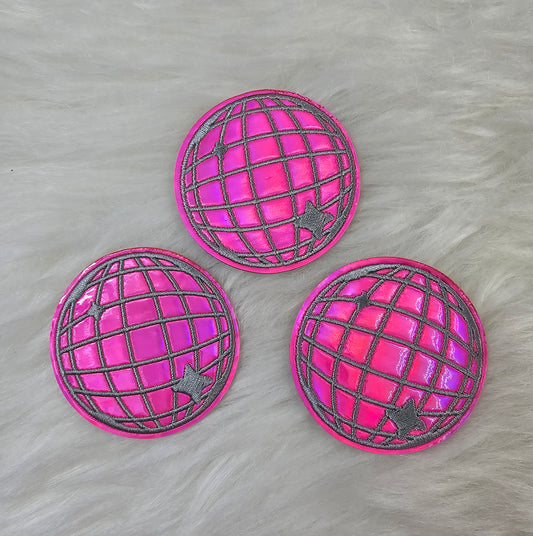 Iridescent Hot Pink Disco Ball Iron On Patch