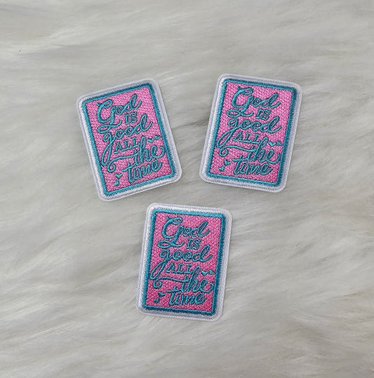 'God is Good all the Time' Pink and Teal Embroidery Iron On Patch