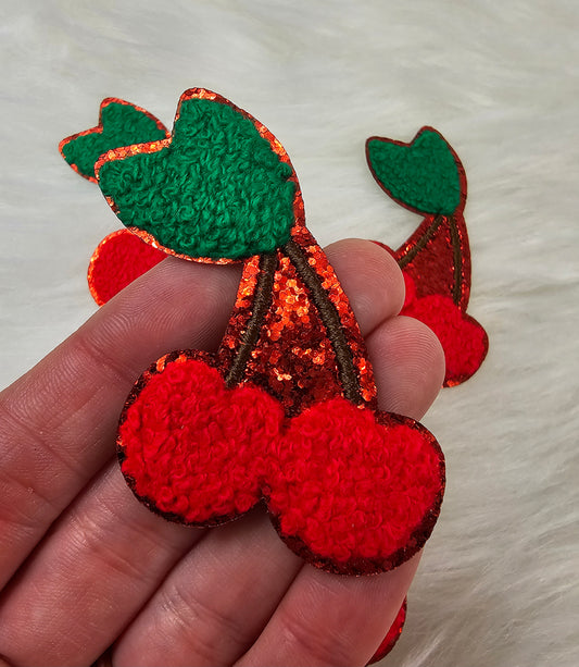 Cherry Chenille with Red Glitter Iron On Patch