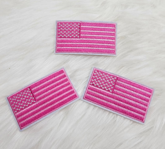 Pink USA American Flag Embroidery Iron-on Patch