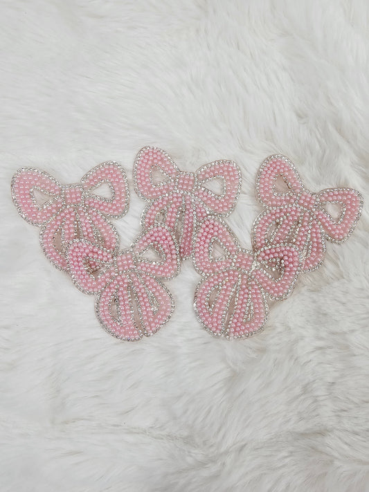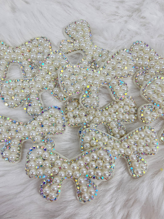 Small Rhinestone and Pearl Bow Iron-on Patch