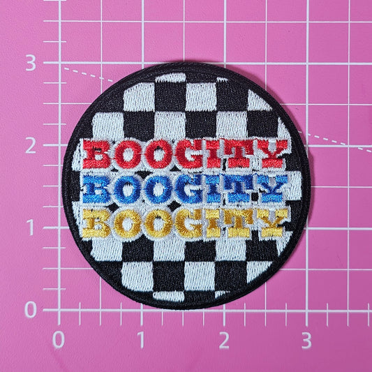 Boogity Boogity Boogity Race Checker Flag Embroidery Iron On Patch