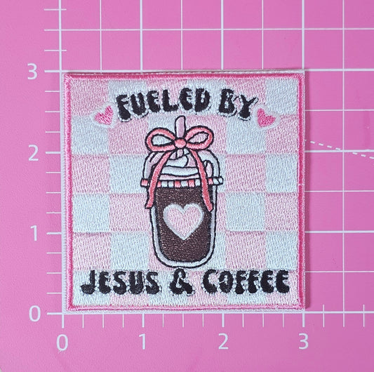 Fueled By Jesus and Coffee Iron On Embroidery Patch