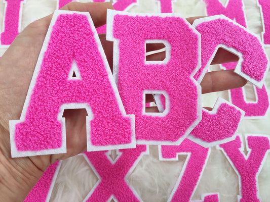 Hot Pink Chenille on Felt Iron On Letter Patches