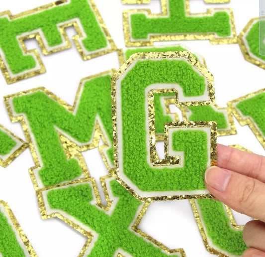 Basketball Chenille Iron On Gold Glitter Letter Patches