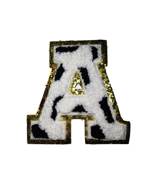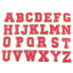 Hot Pink Chenille Iron On Gold Glitter Letter Patches