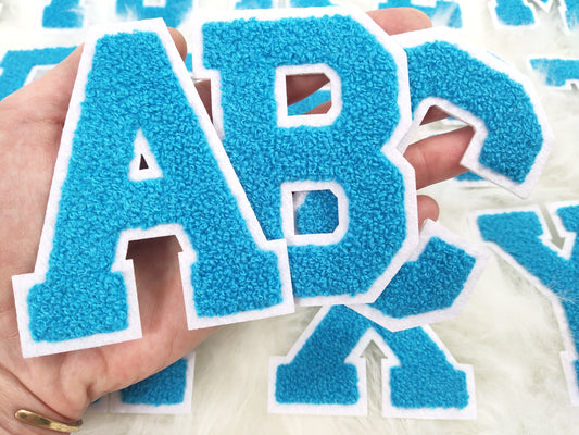 Neon Blue Chenille on Felt Iron On Letter Patches