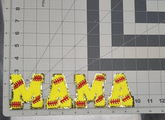 Softball Chenille Iron On Gold Glitter Letter Patches