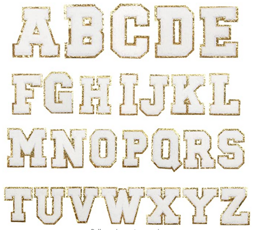 White Chenille Iron On Gold Glitter Letter Patches