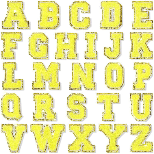 Yellow Chenille Iron On Gold Glitter Letter Patches
