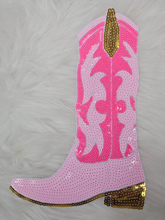 Pink Sequin Cowgirl Boots Iron-on Patch
