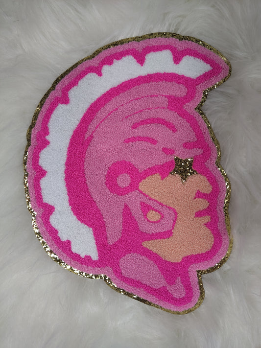 Hot Pink Trojan Spartan Mascot with Star Eyes Large Chenille Iron-on Patch
