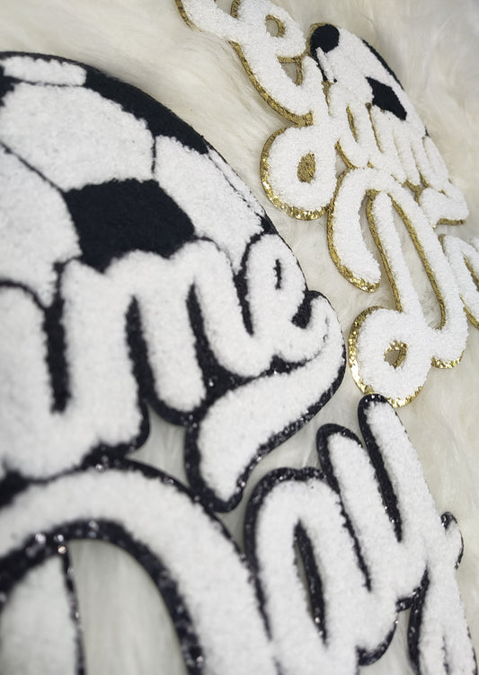 Large White Soccer Game Day Chenille Iron-on Glitter Patch